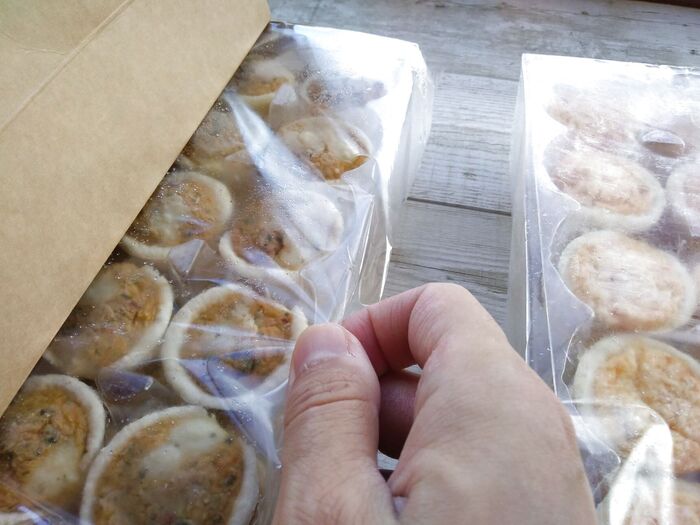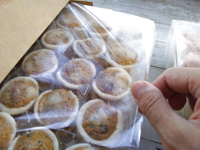 ※解凍する場合は、24時間冷蔵庫で解凍する。もちろん、一度解凍したミニキッシュを再冷凍することはできません。