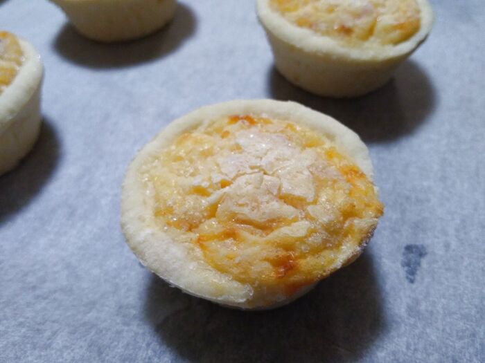 3.予熱が完了したオーブンに、ミニキッシュを並べたトレイを入れて10~12分加熱する