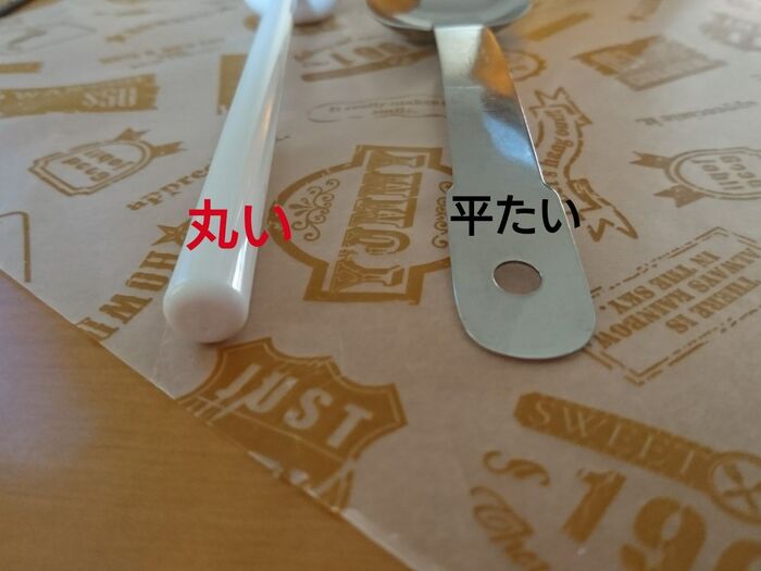 白いスプーンは柄が丸いため、