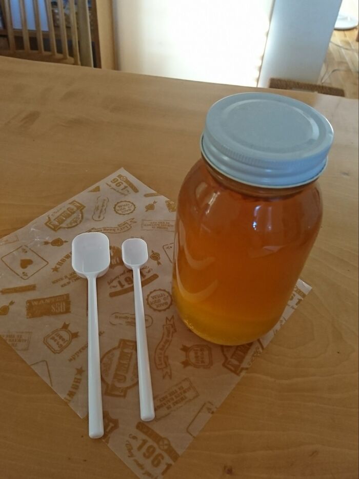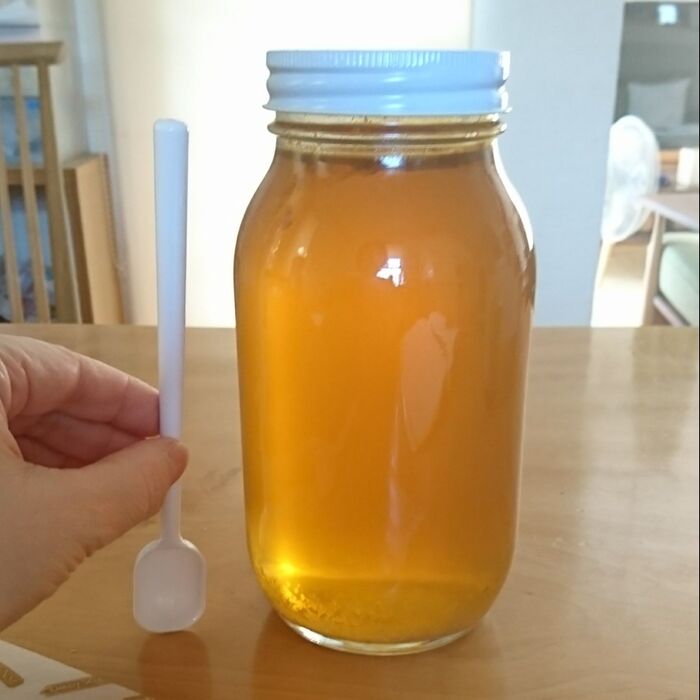 大きなはちみつ瓶の底に届く長さです。