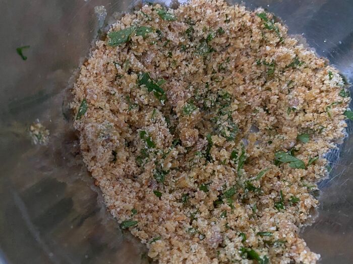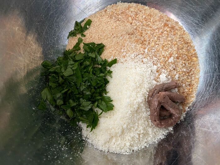 ボウルにパン粉 アンチョビ パルミジャーノ