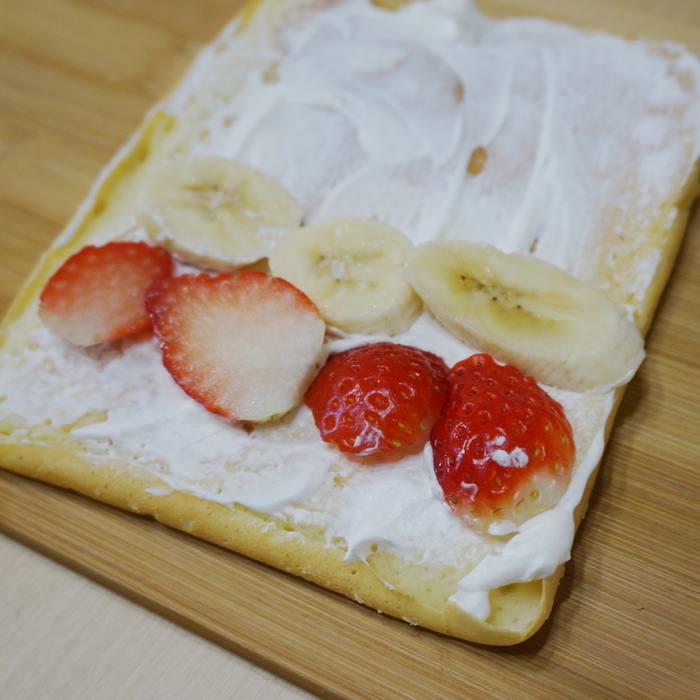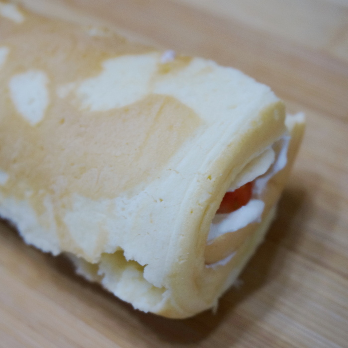 フルーツを巻くときのクリームは、薄く。フルーツも適量に。綺麗に巻けなくなるので注意です。