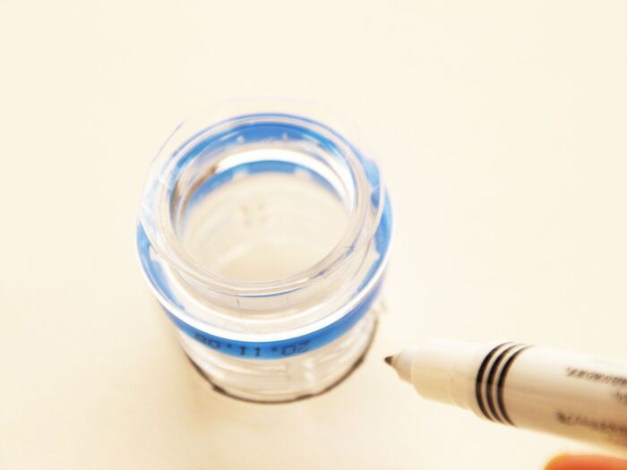 先ほど切ったPETを紙皿に乗せてペンで円をなぞります。