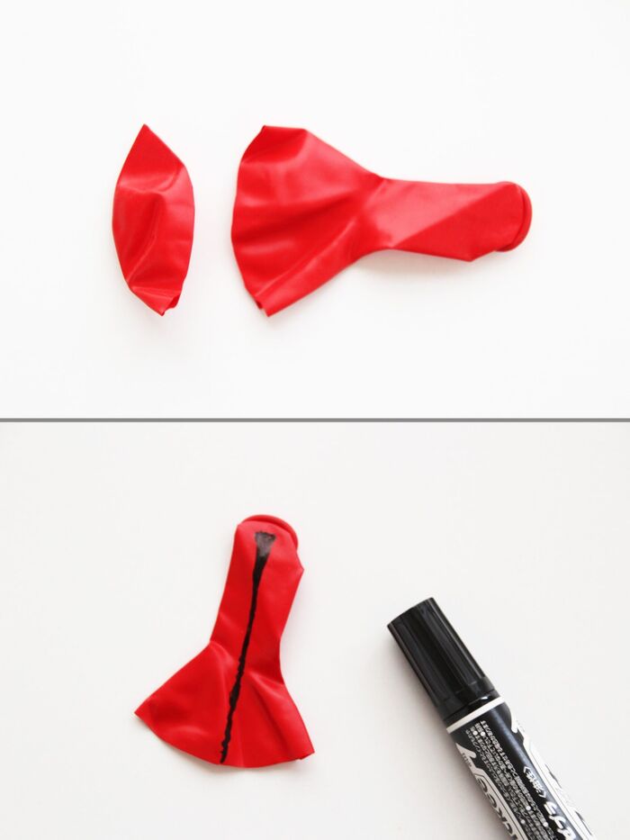 ☆次に風船の丸く膨らんだところを半分の位置でカット!(写真上)