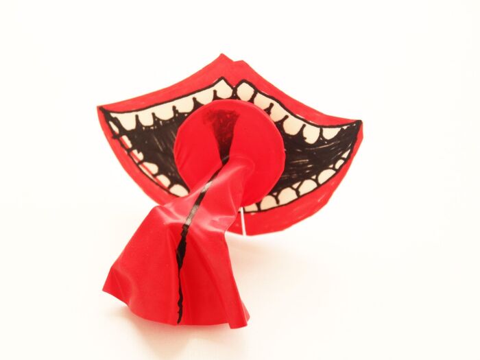 【ボロロロ〜と音がする仕組みは風船のくっつき合う振動と吹く息の勢いで音が出ます】