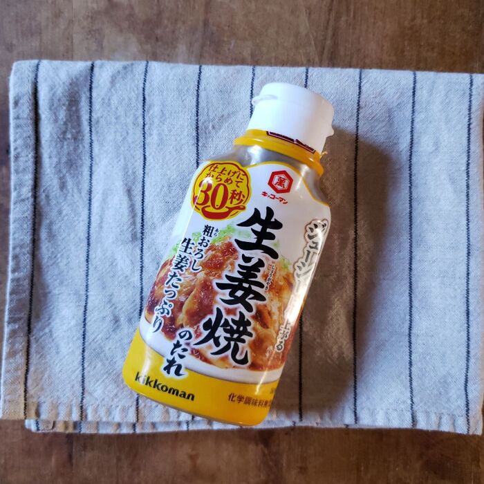 生姜焼きは、朝お弁当を作る時に時短で便利な生姜焼きのたれを使って作りました。