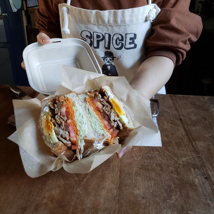 ボリュームのあるサンドイッチを作る時に気を付けている事は、重ねる順番と全体の味のバランスです。