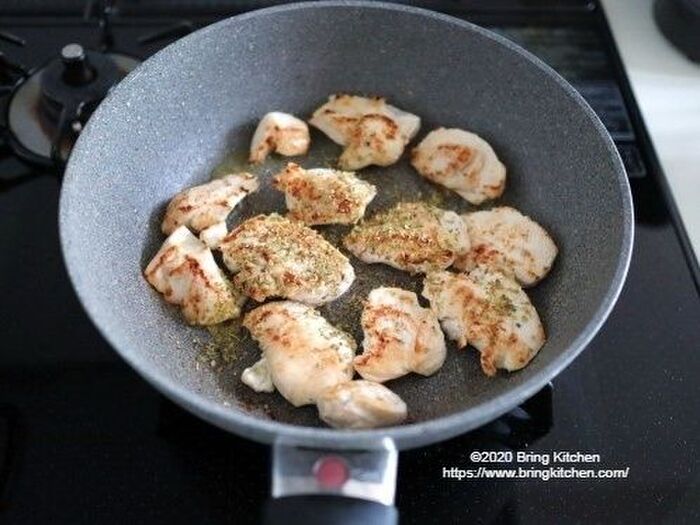 GABANオレガノは鶏むね肉に振りかけて、風味をしっかりとつけます。