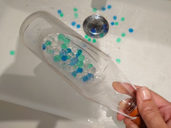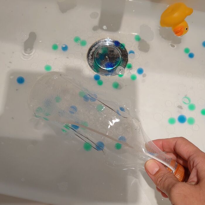 実際の湯垢や髪の毛は、遠慮させて頂き、このビーズを湯垢や髪の毛と見立てて
