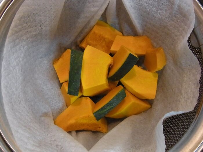 ※カボチャを切る前に少し蒸すと断然!切りやすくなります。