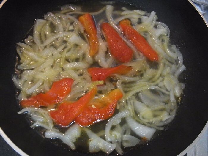 ニンニクを炒めたフライパンにスライスした玉ねぎをしんなりするまで炒めます。