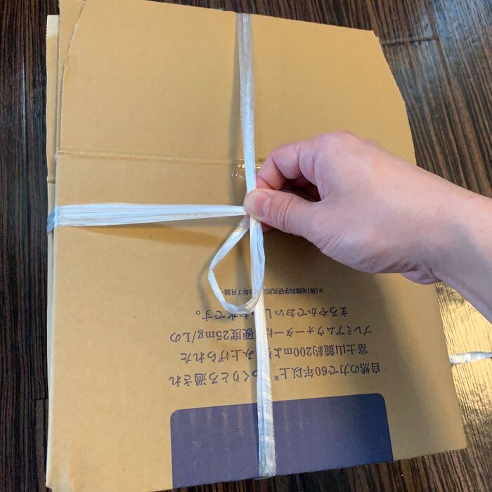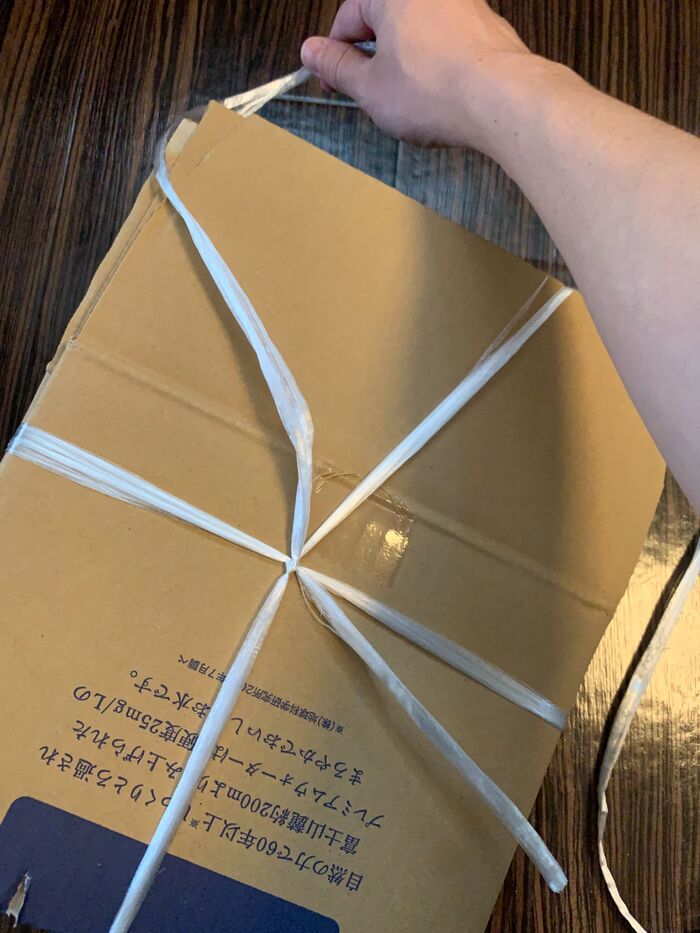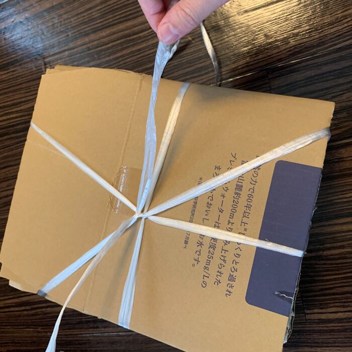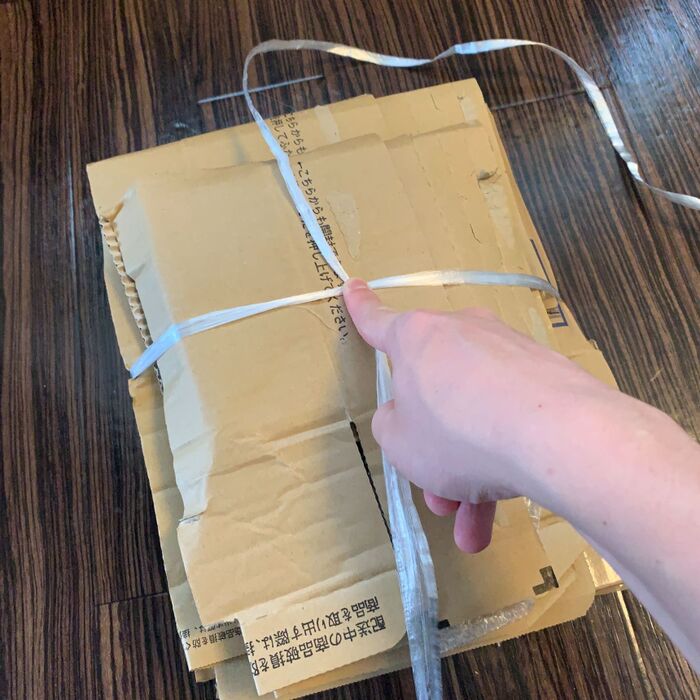全ての段ボールを先ほどの手順を使いながら、同じくらいのサイズに畳んだら紐で結びます。