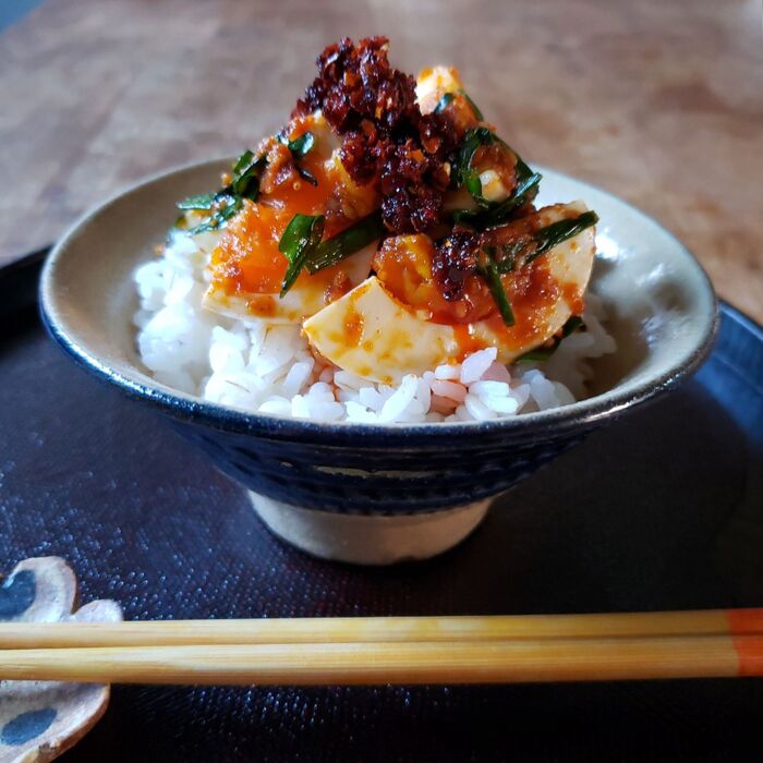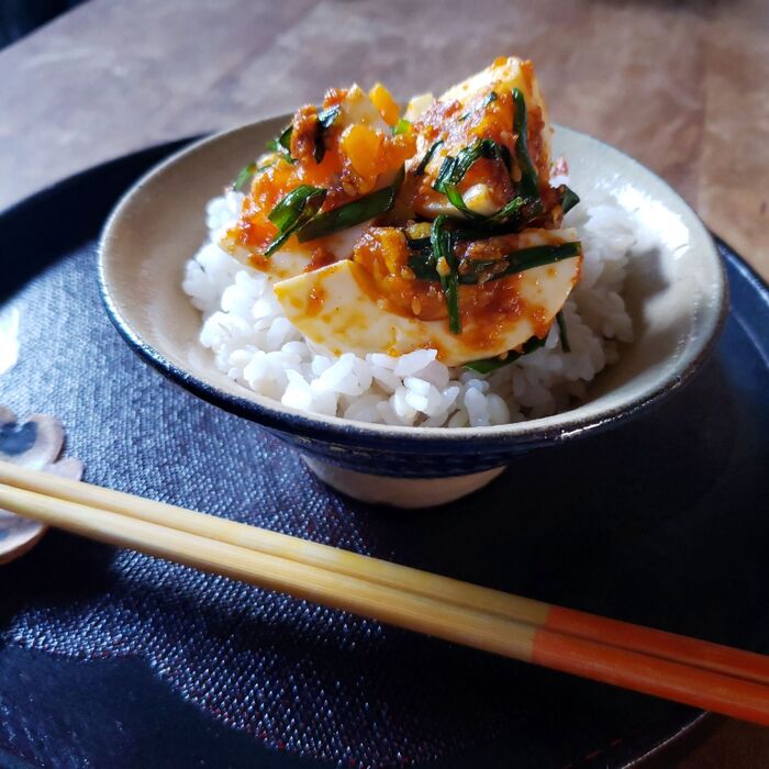 辛いのが好きな方は、食べるラー油をかけて食べるのも◎