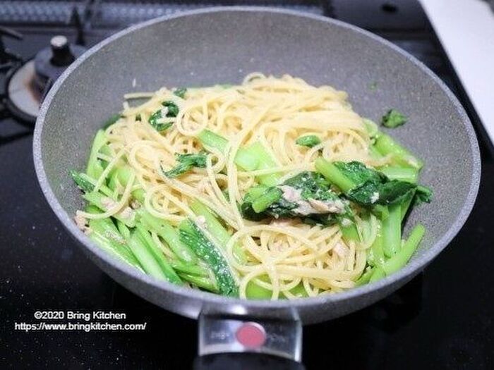 鍋に湯を沸かし、塩(分量外・適量)を加えて表示時間より1分短く茹でる。