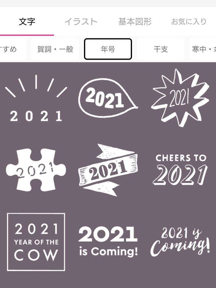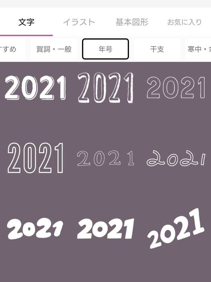 年号ひとつでも、オシャレなデザインが本当に豊富なので、何度も入れ換えたりして、ついつい悩んでしまいます。
