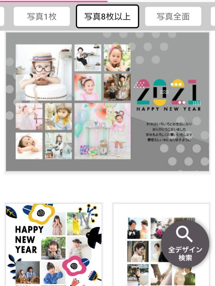 どんな感じの年賀状にしたいかイメージしながら、選べる豊富なデザインの中から決めていきます。