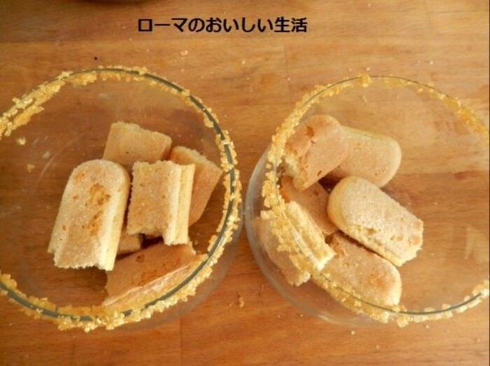 サヴォイアルディビスコッティを2本ずつ3つ位におって入れる