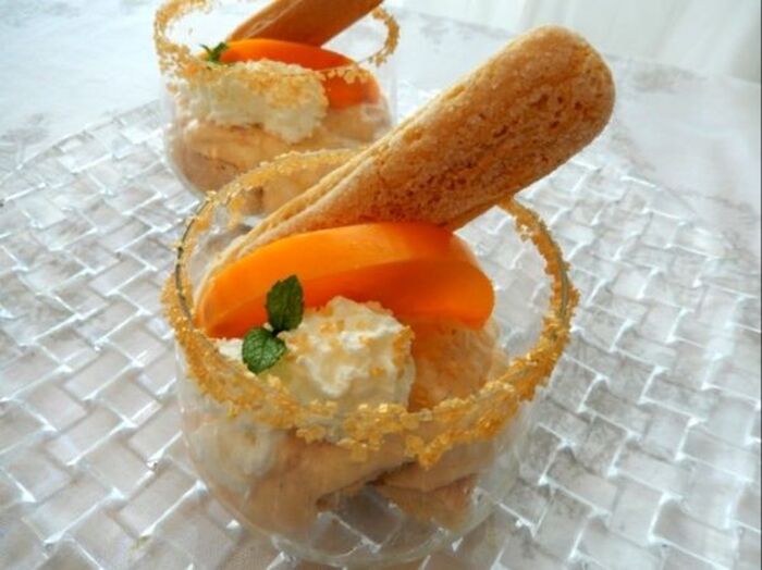 上に柿のピュレをのせ ティラミスクリームを入れる