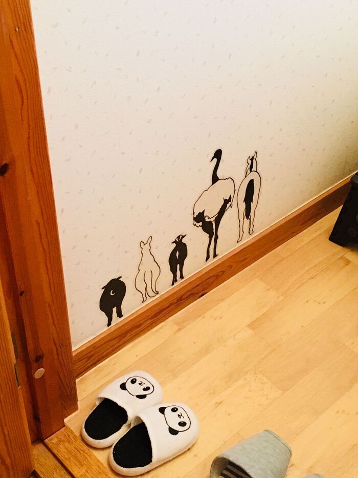 残ったステッカーも子どもたちと一緒に入り口付近に貼って、セルフリフォーム完成です♪