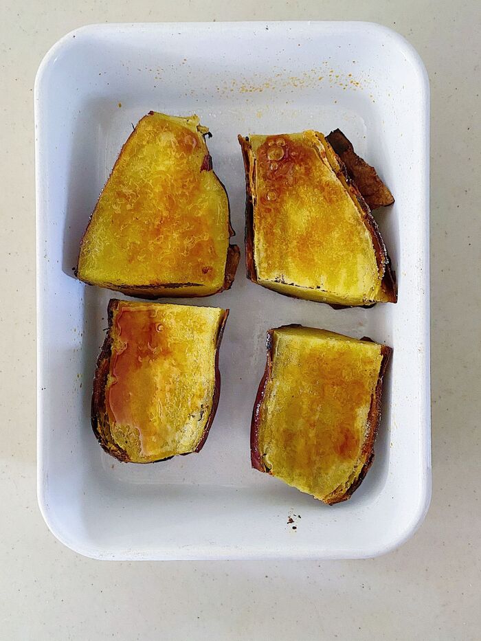 バニラアイスやナッツをあわせても美味しいと思います!熱々のお茶をお供に秋のおやつタイムに是非どうぞ〜