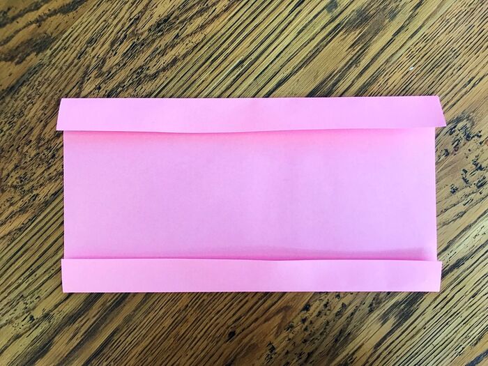 ⑵ 次に、先ほど書いた線に沿って上下を折る。