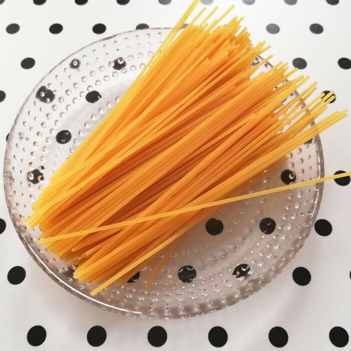 パスタは半分に折ります。