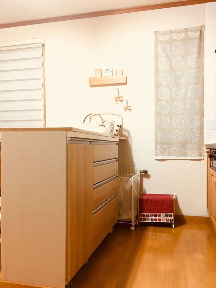 食器棚の裏面は以前ご紹介したカウンター風になっています。このDIYをきっかけに、引き出し部分の色をもう少しナチュラルに変身させることにしました♪