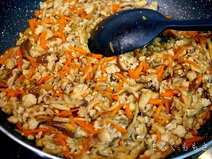 舞茸の見た目が鶏ひき肉とわからなくなり(笑)