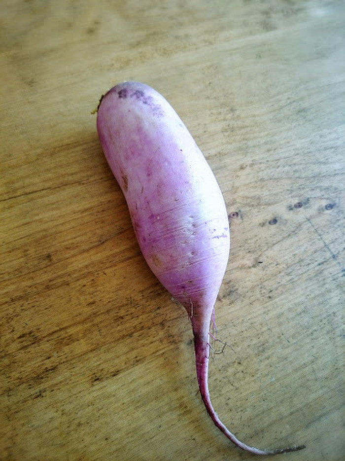 見かけはこんな大根です。皮が薄い紫なんです。
