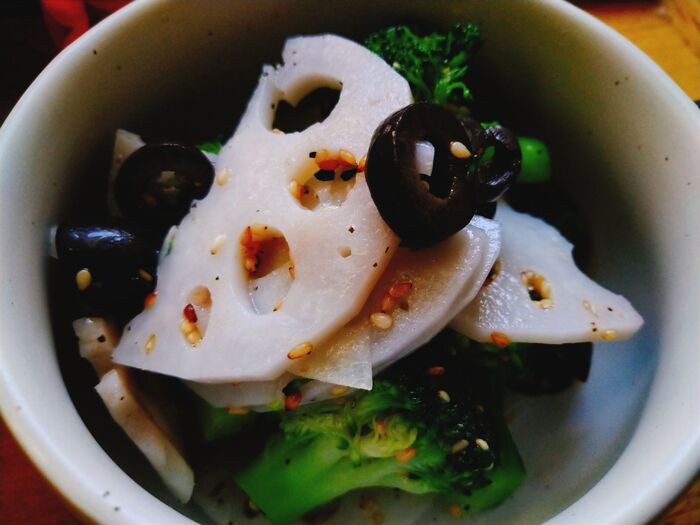 お好みの柔らかさに茹でる。ブロッコリーを取り出しれんこんをサッと茹でブロッコリー