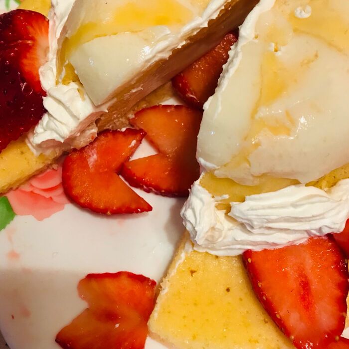 ⑨固まりましたら、予めお皿に丸くカットした生地に⑧をのせデコレーションします。