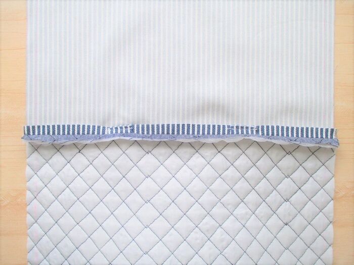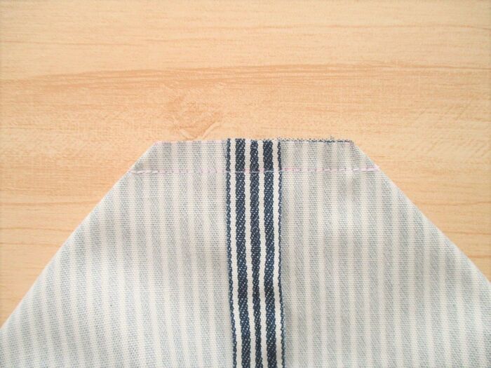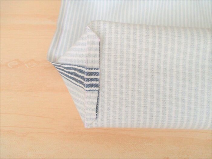 表地を裏地側に1~2mm位入れてアイロンをかけます。