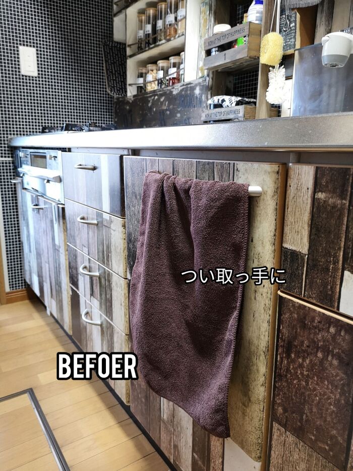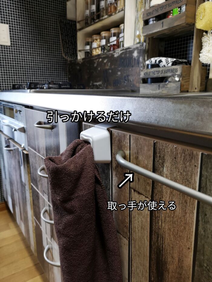 取っ手にタオル。