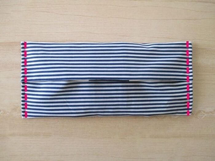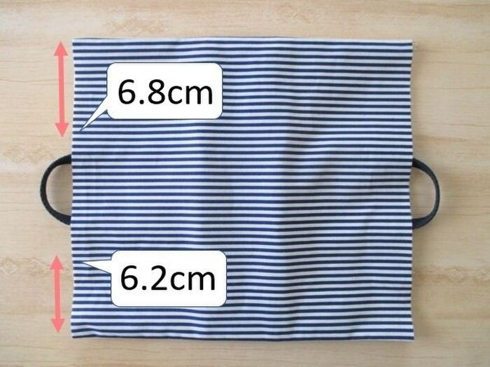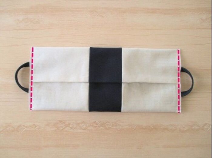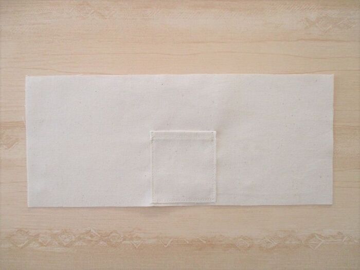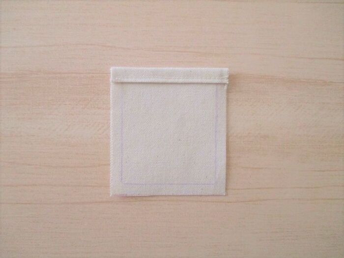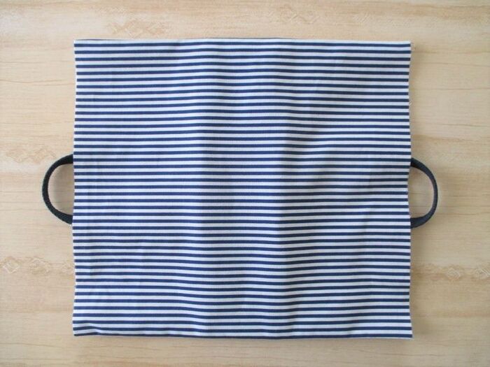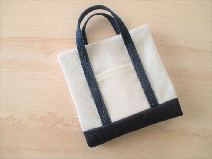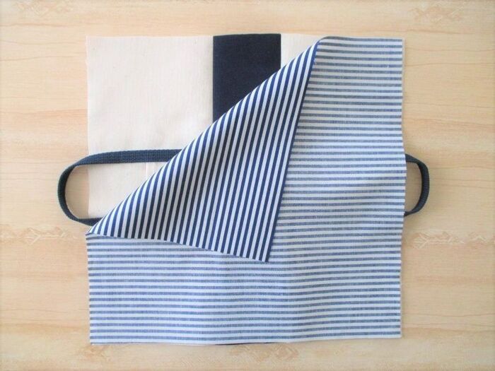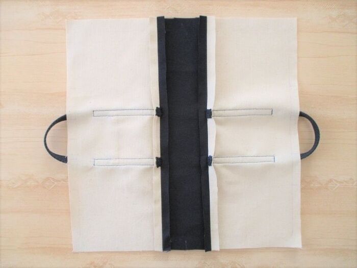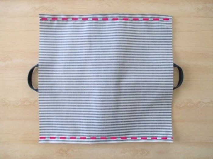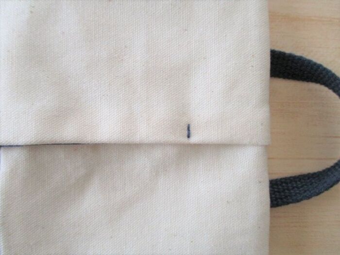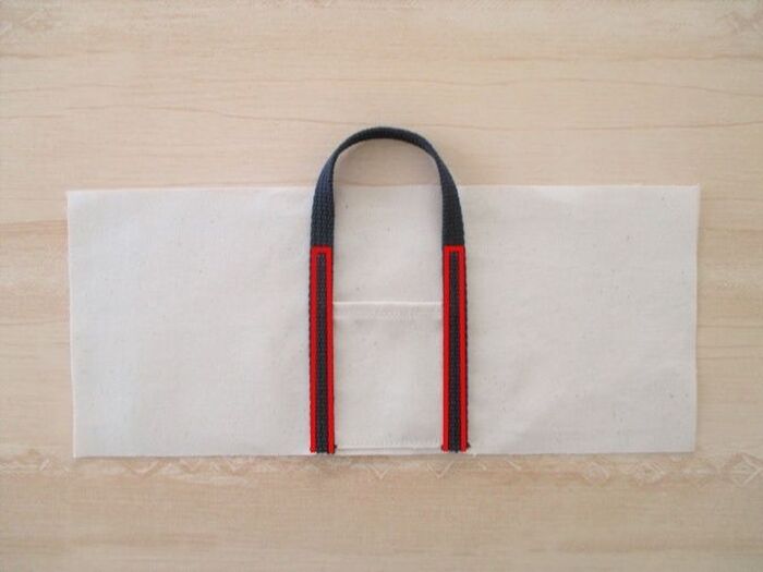 縫うのに邪魔になるので持ち手を裏側に倒します。