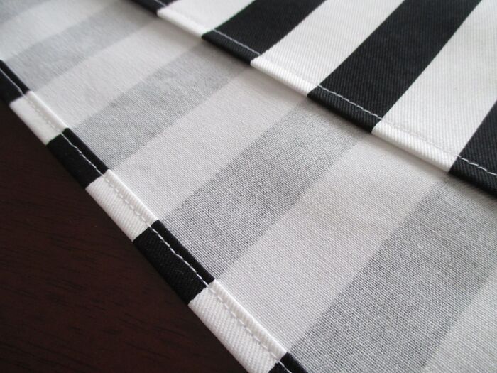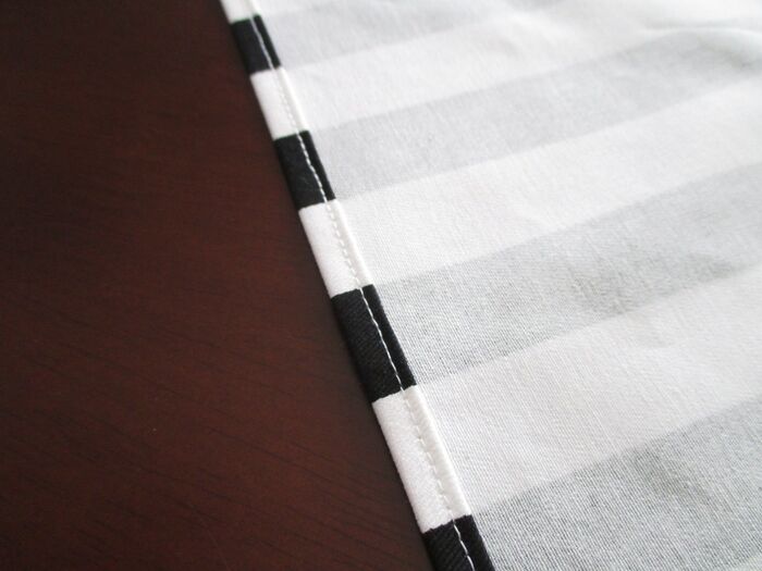 短い方の端を仕上がり線に沿って三つ折りにし、縫います。