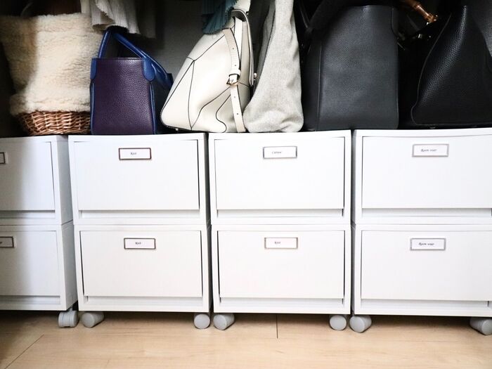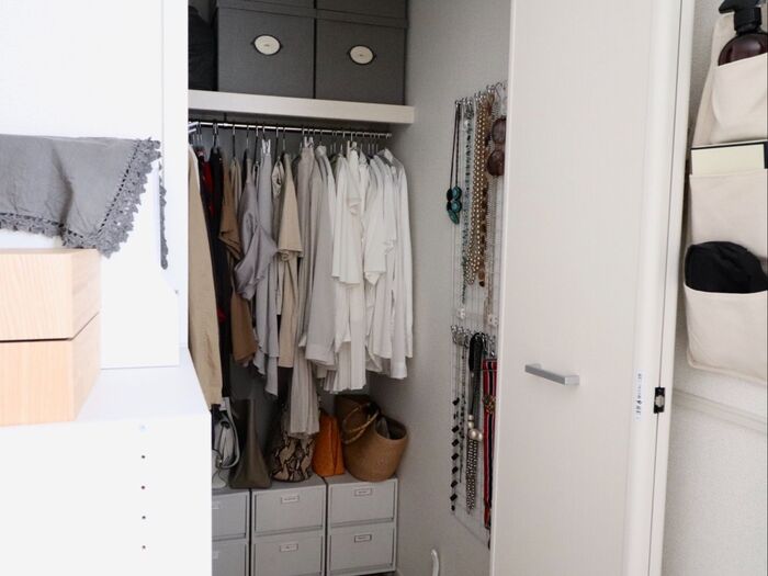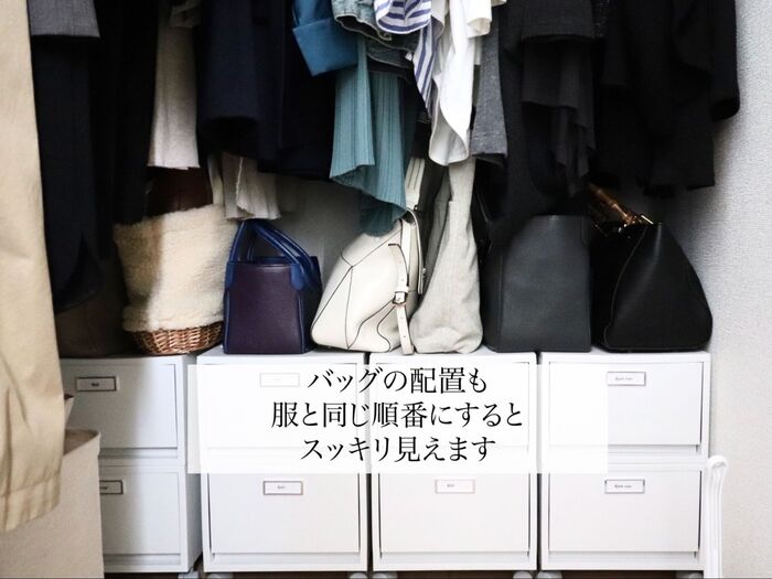 ・バッグや小物も、服と色を合わせて置くと、スッキリ見える