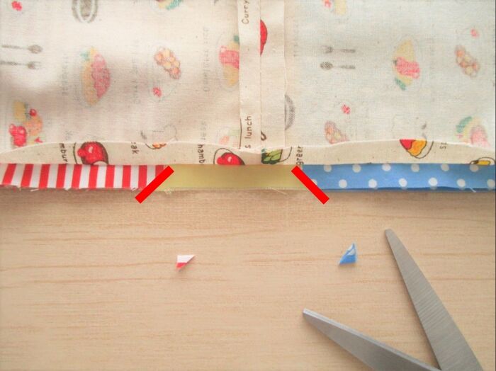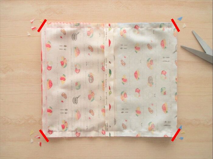 縫い代を開いた中にある角を切り落とします。