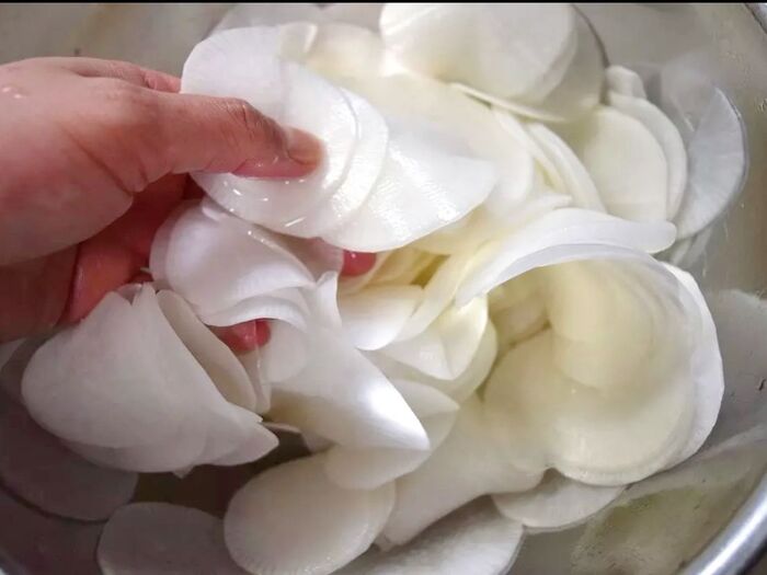 1では、重なり合ってる大根をできるだけはがしながら全体にまんべんなく塩が行き渡るようにします。(出来るだけでOKです)