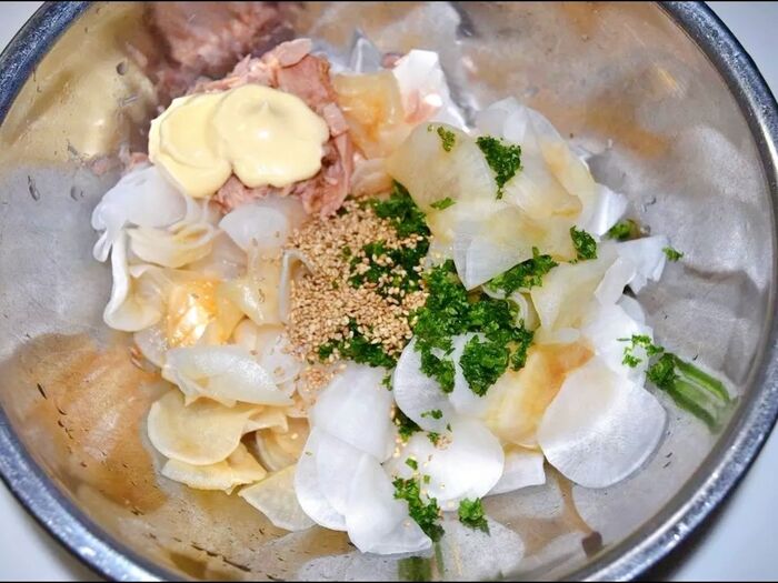 (ツナは水けをきって加える)