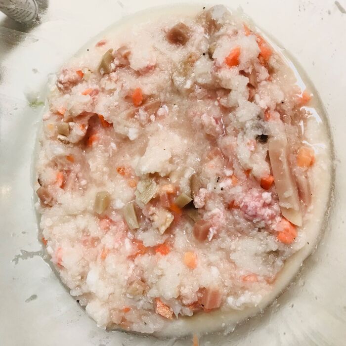③片栗粉を入れて混ぜます。水っぽいですが大丈夫です。