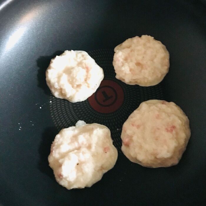 ④深さのあるフライパンに少し油を入れて、やや強火にして③を大さじのスプーン