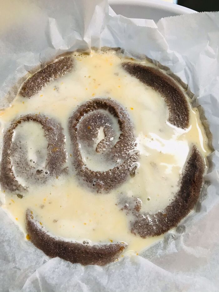 ※ケーキは最初上に浮きますが水分を吸収してうまい具合に