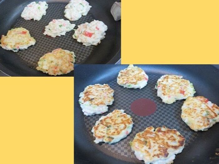 【材料】長芋:すりおろし175g カニ棒6本ほど 冷凍刻みネギお好みで