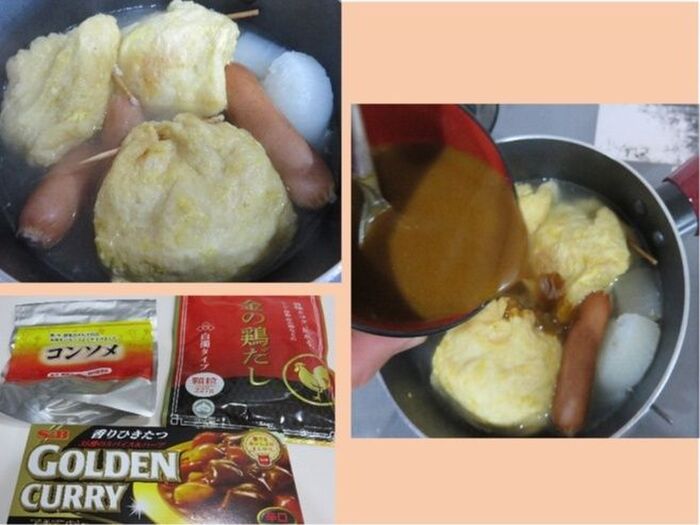 煮えたら、コンソメ・鶏ガラ・カレールーのどれかで味付け('ω')ノ