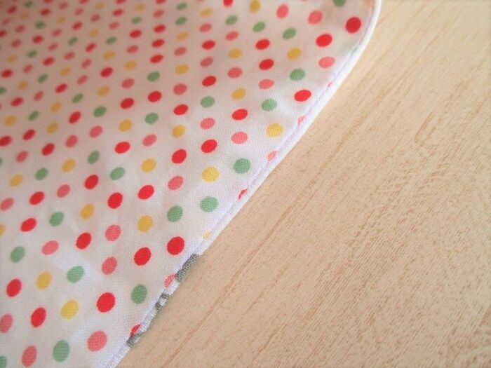 角を4か所切り落とし、縫い代をアイロンで割ります。