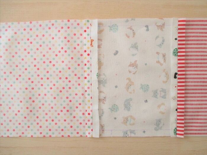 左側は2枚・底布は1枚、生地を用意します。