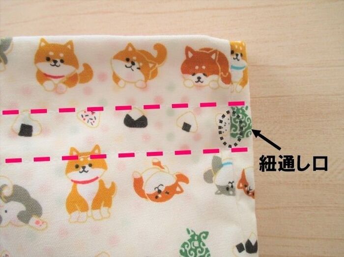 紐通し口の上と下をぐるっと縫います。