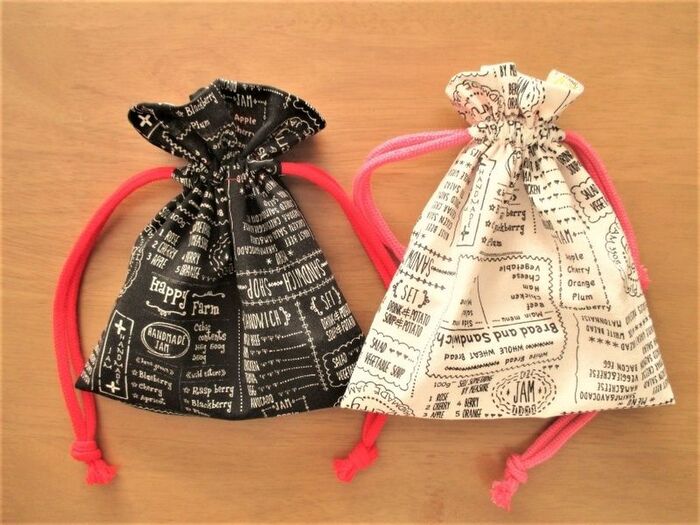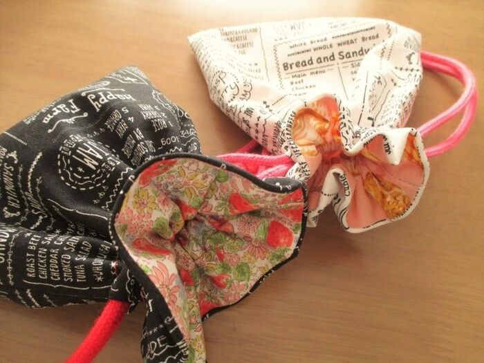 以前制作した【簡単!かわいい!!裏地付き巾着袋の作り方】と比べてみました。