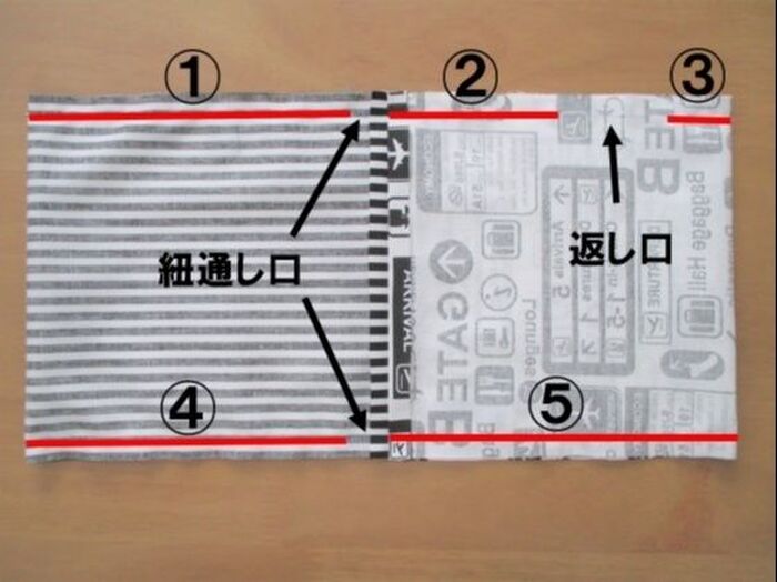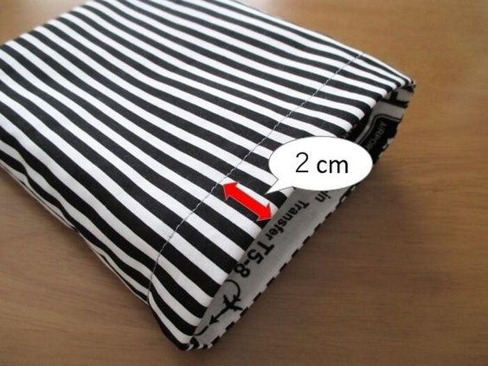 紐通し口の下(2cm)をぐるっと1周縫います。