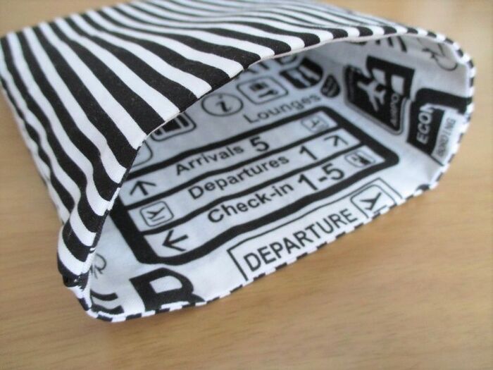 4ヶ所角を切り落とし、縫い代をアイロンで折ります。